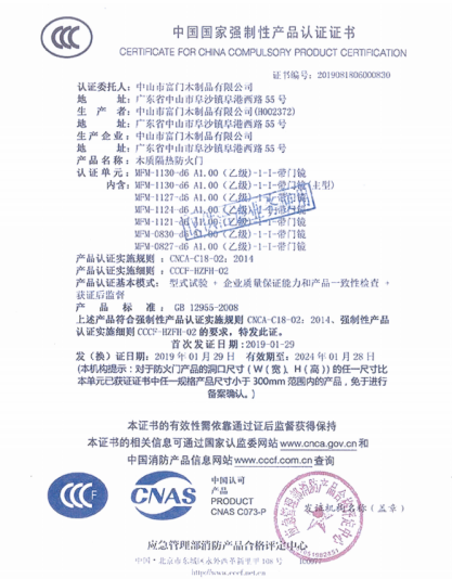 Old To New company’s fire doors of various specifications have obtained the 3C mandatory certification, confirming that our products meet the standard requirements. The maximum dimensions available for our certified fire doors are 1800×2700mm and 2100×2400mm.